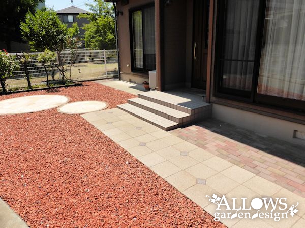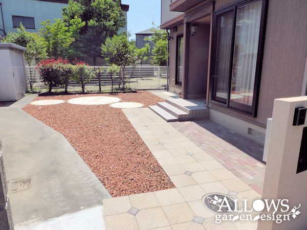 他のガーデン部分は、防草シートの上に瓦を砕いたチップ。