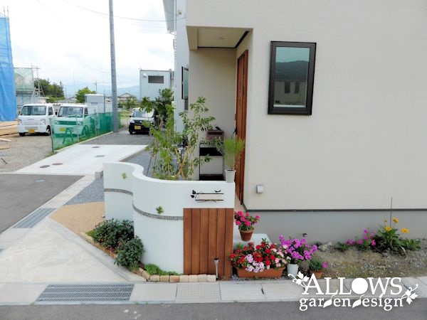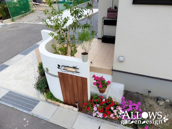 シンボルツリーや草花との相乗効果で、見事なエントランスになりました‼