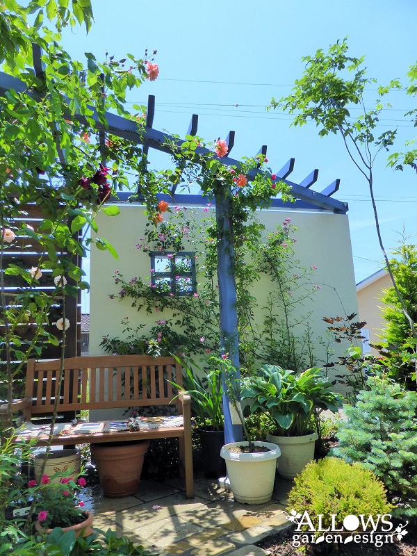 パーゴラと小窓は他と色を変えて、ブルーで仕上げ。