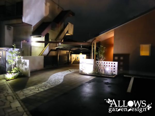 奥行のある敷地の場合は、その一番奥に照明を入れて明るくすると、奥行き感が出て費用以上の効果があります!