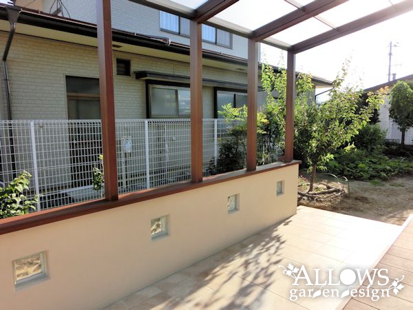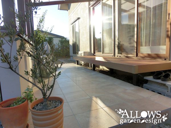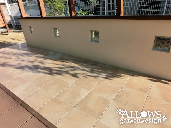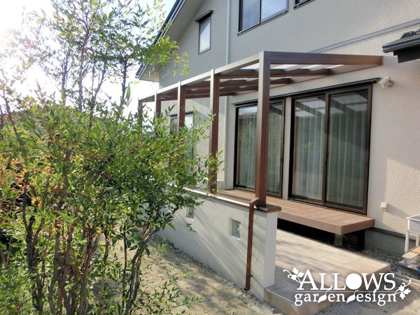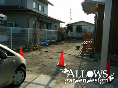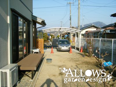 今はまだ緑はそれほどありませんが、ガーデニング好きの奥様がこれから楽しんでやっていただけるように、そのスペースづくりのお手伝いをさせていただきました。