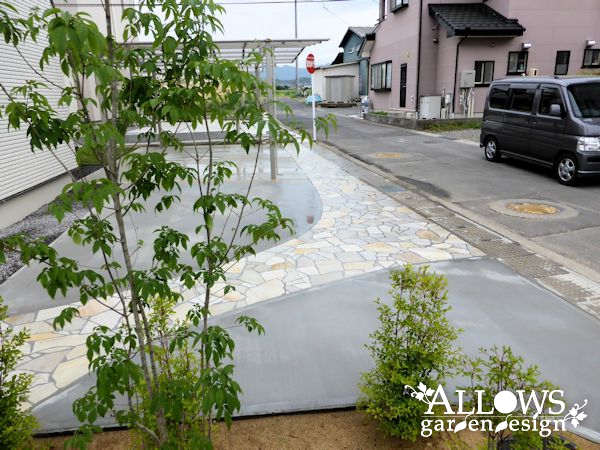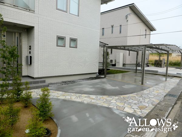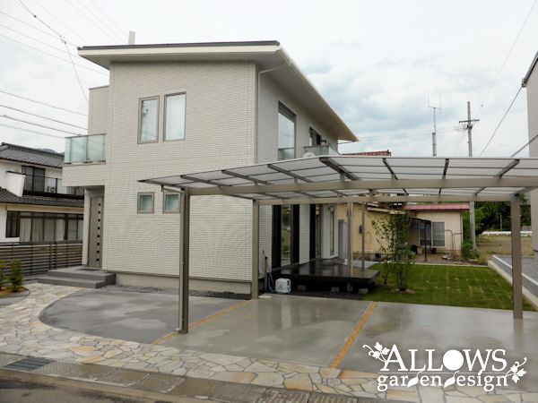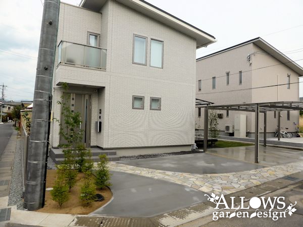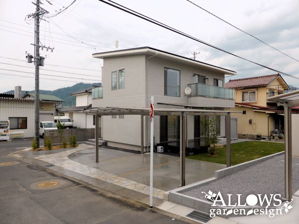スタイリッシュな外観のデザインに合わせたエクステリアが完成しました。