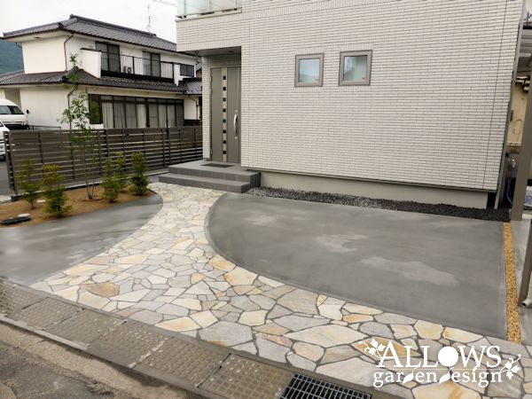 アプローチには、天然石を採用。