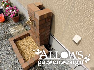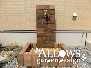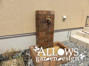 3方をレンガで囲い蛇口を貫通させました。
