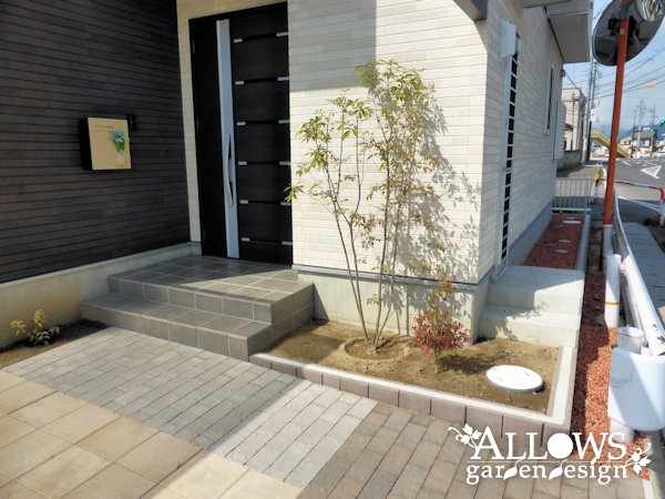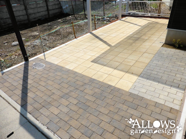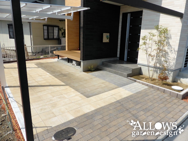 インターロッキングは2種類・3色を使用し、変化を持たせ外壁とも調和させました。