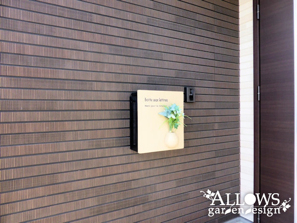 ポストにもフェイクグリーンを配置できる、『クーリエ・ポット』で緑を演出。