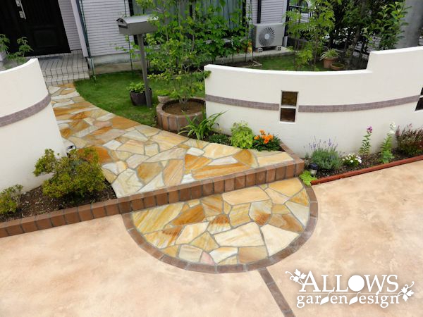 下の段にはみ出した半円部分と縁のレンガが、とても良いアクセントになっています!