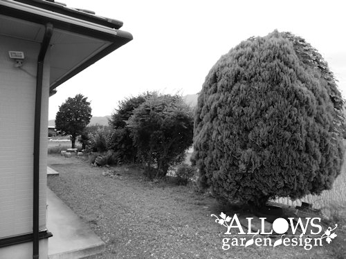 勝手口などへの視線を分散するように、高木や低木を植え込みました。