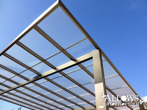 柱から梁、屋根まわりまで、アルミ製ですが木目調のデザインになっています。
