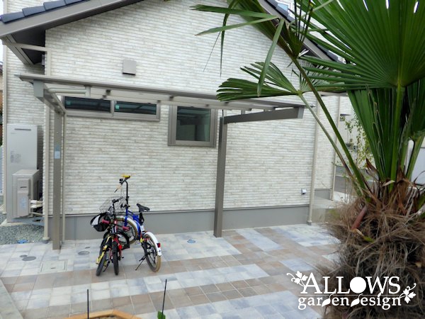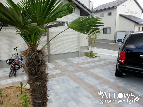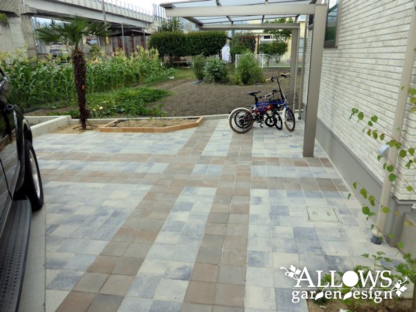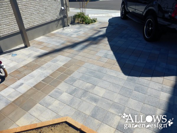 舗装材は遮熱&透水性のインターロッキング『シャビー』。