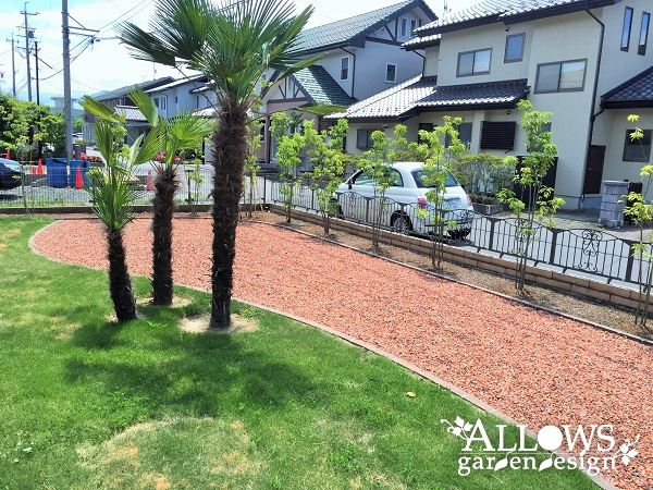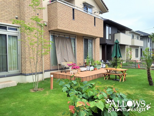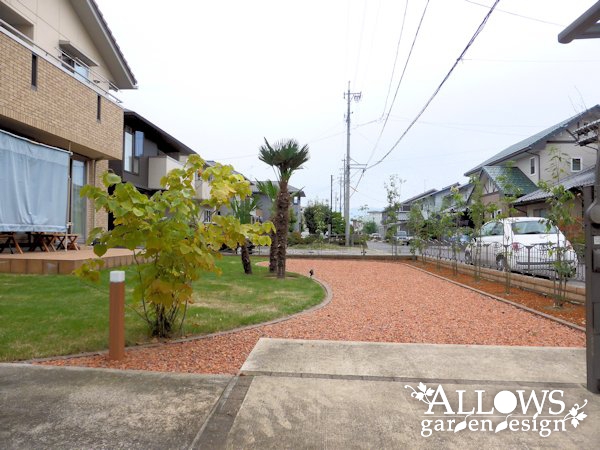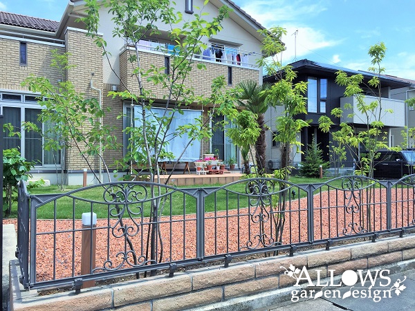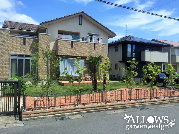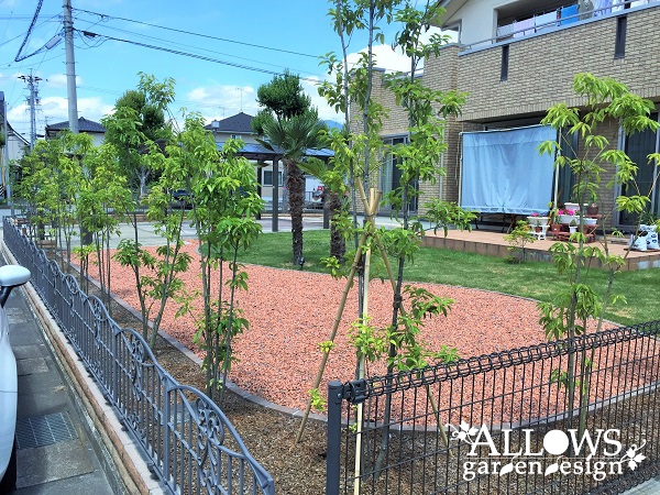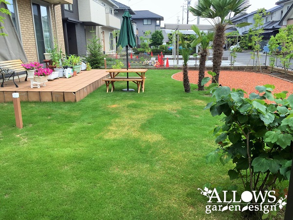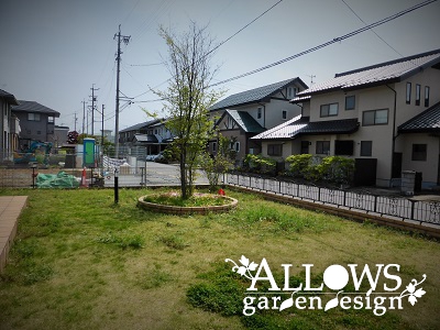 広々とした芝生と沢山の木々に囲まれたガーデンが完成しました。
