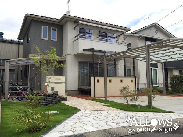 ご新築時にアプローチやカーポート、ウッドデッキなどが完成していた物件。