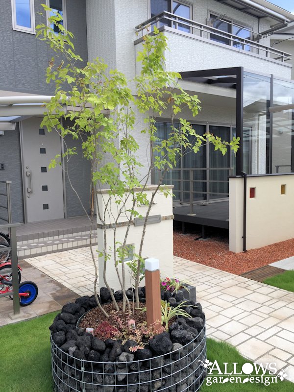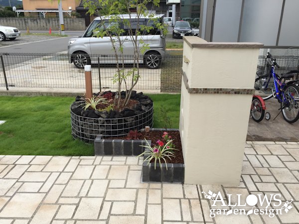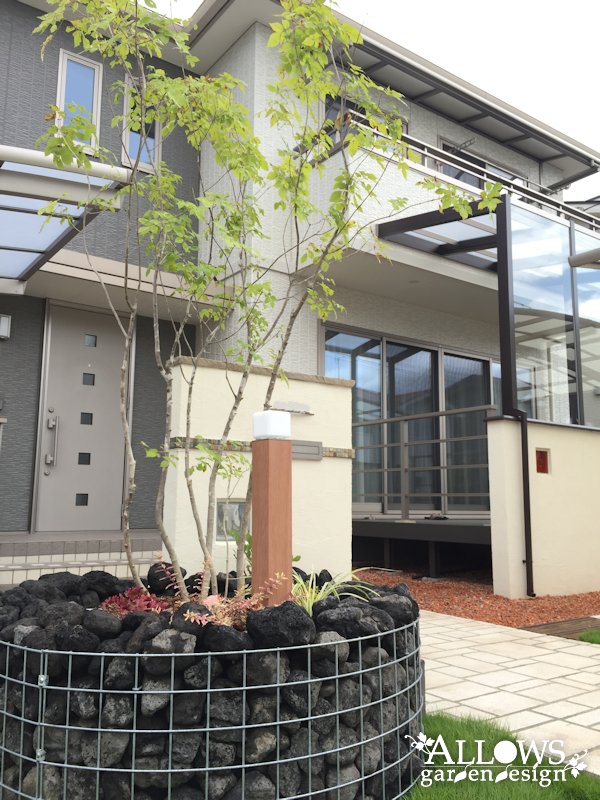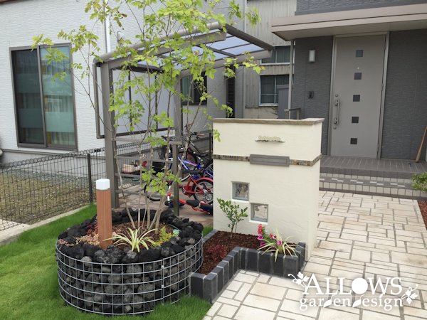 門袖とセットで設置させていただいた、植栽マスのガビオン。