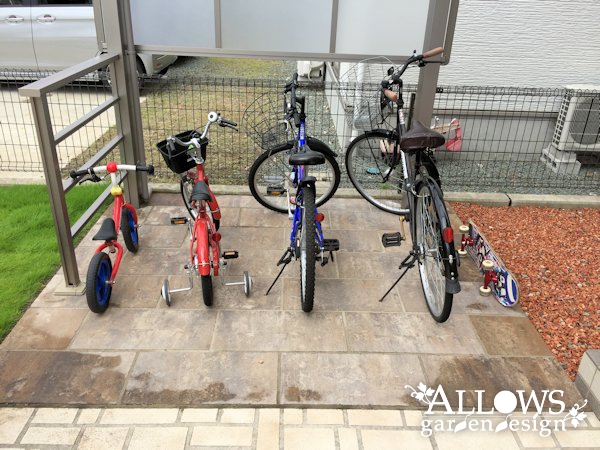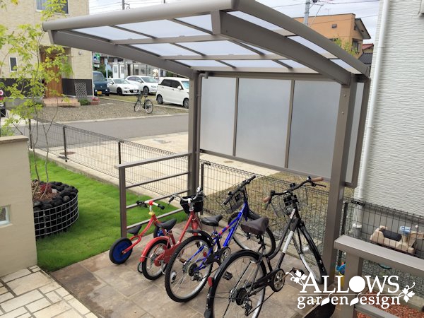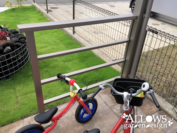 ウッドデッキに使われていたフェンスは、玄関の横とサイクルポートの囲いとして再利用。