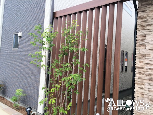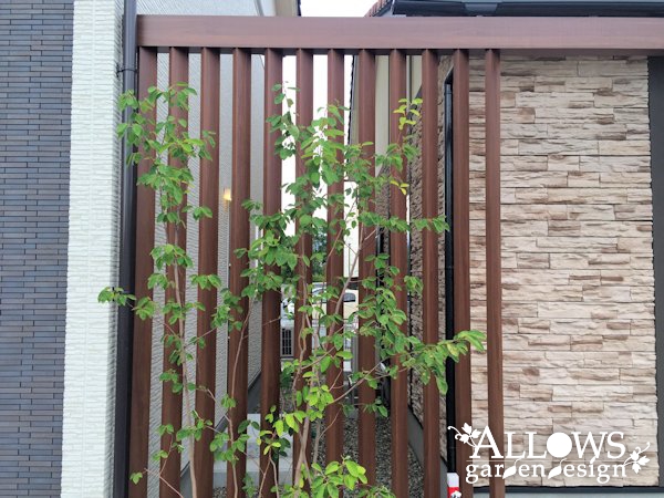 角度をつけて設置した、プラスGの縦格子。