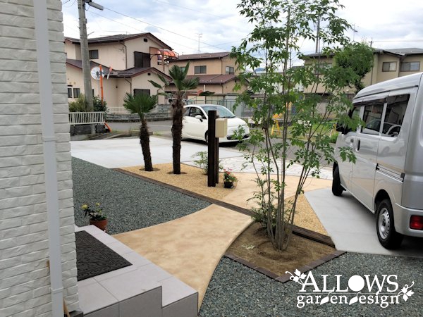 植栽スペースに敷いたイエローチップともよく馴染んでいます。