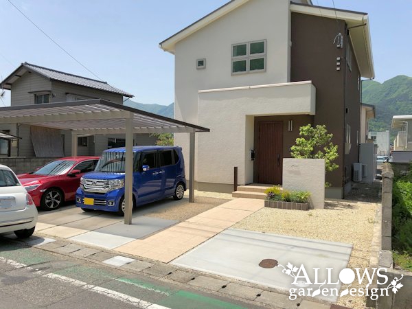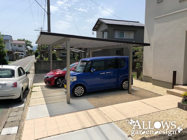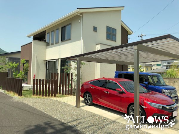 一期工事で門袖やスリットフェンス、タイルテラス、植栽などを施工させていただき、今回、二期工事でカーポートのご依頼をいただきました。
