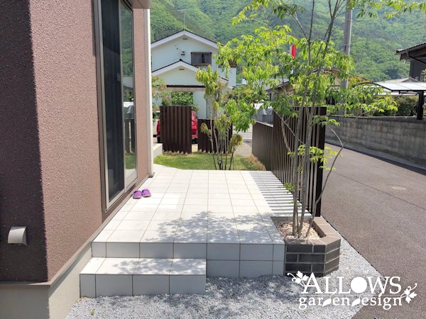 メインガーデンは、ホワイトのタイルデッキ。