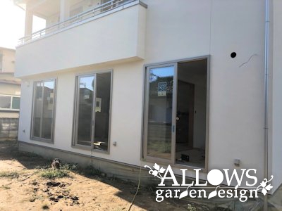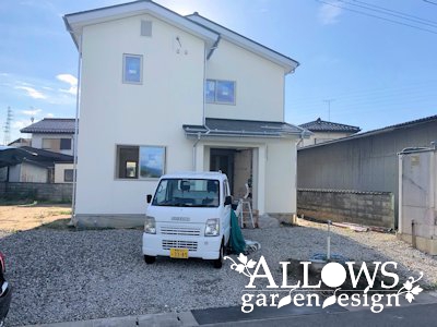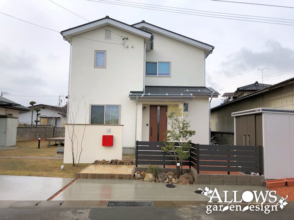 白い外壁に緑が映える、ナチュラルな雰囲気のエクステリアが完成しました。