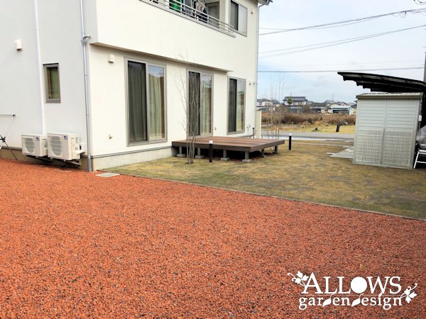 玄関から道路まで距離があるお宅だったので、道路際はコンクリートで駐車スペースとしても活用できる空間にしました。