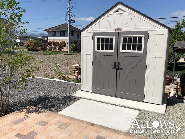 ガーデンのシンボルとなってくれる、デザイン性の高い物置。