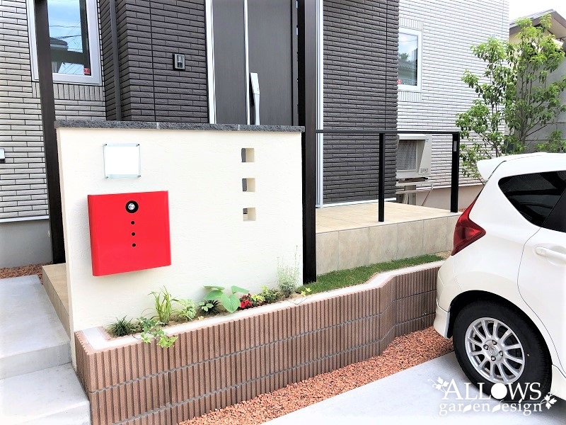 赤いポストがアクセントカラーとなって、目を引きます。