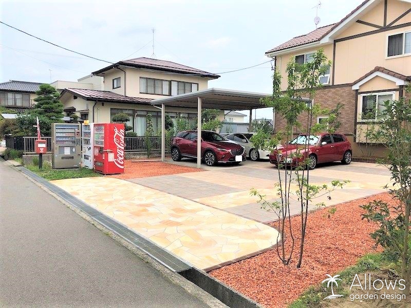 カースペースは30cm×60cmのSBICのインターロッキング“パエリア”を並べさせていただきました。