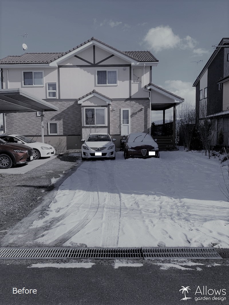 上記の写真のように雪があるときはとても雪かきもしずらく、雨の時は水たまりやぬかるみができてとても不便でした。
