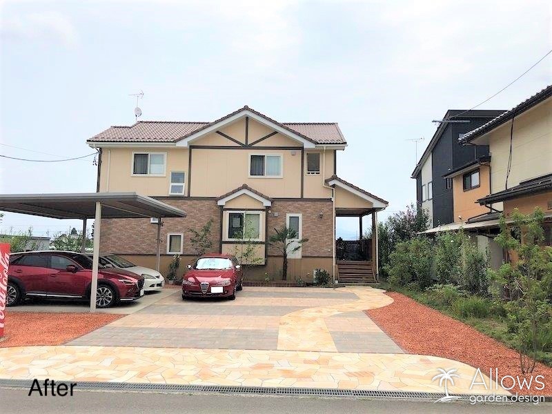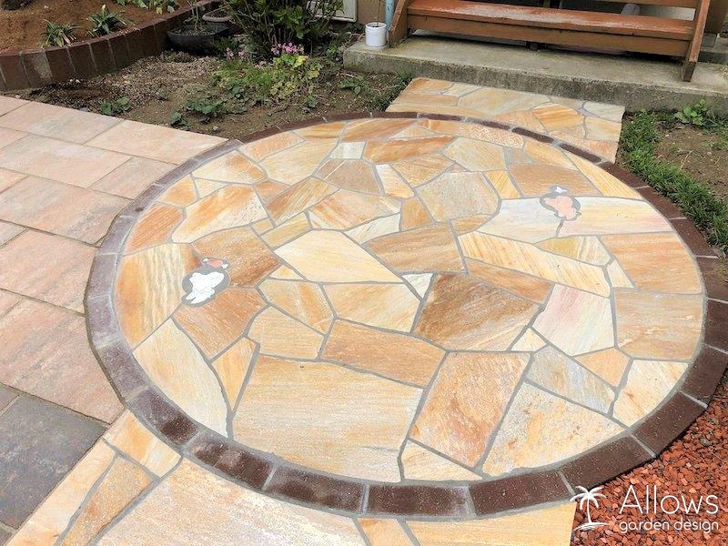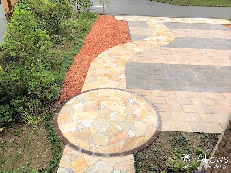 全面的に、インターロッキングと天然石の乱張りの舗装をさせていただきました。