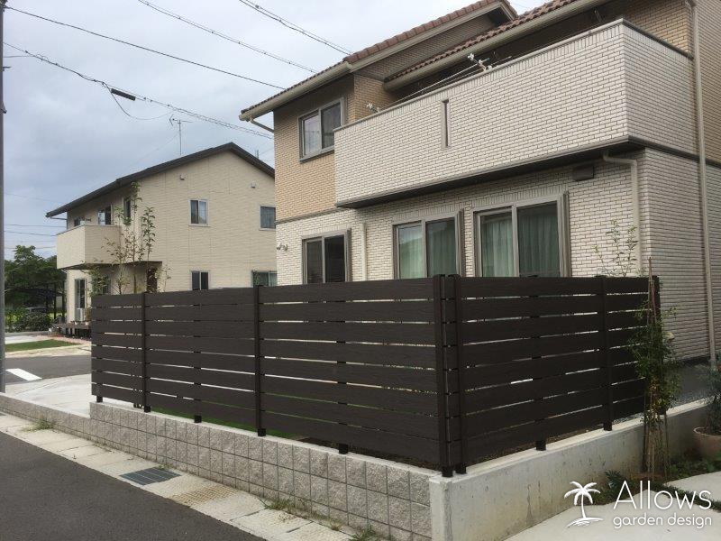 使用したのは、タカショーの樹脂フェンス『モクプラボードリアル』のダークパインです。