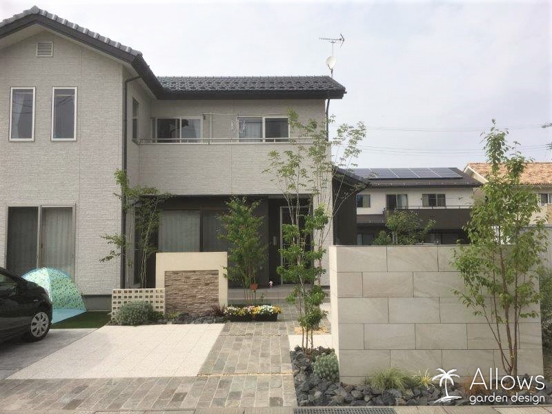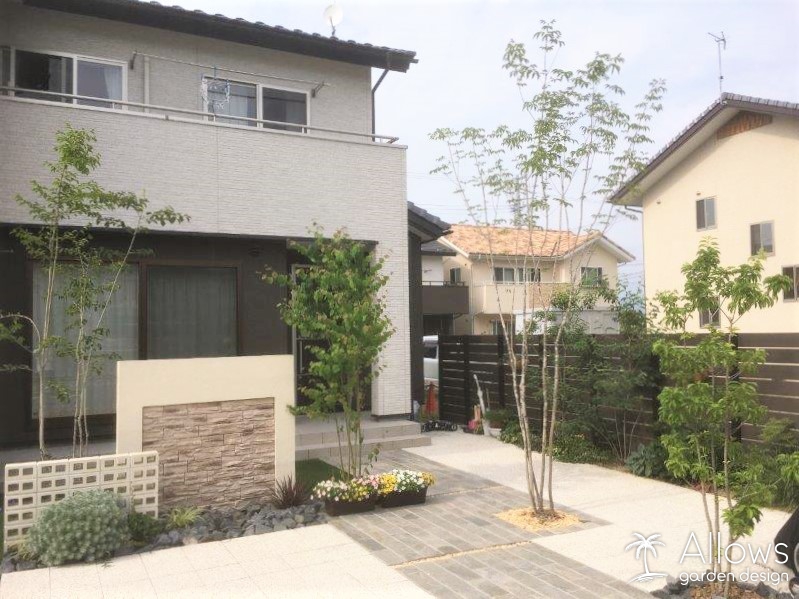 ローメンナンスな部分と、植栽を取り入れ自然を感じられる部分と、バランスの取れたエクステリアになりましたね。