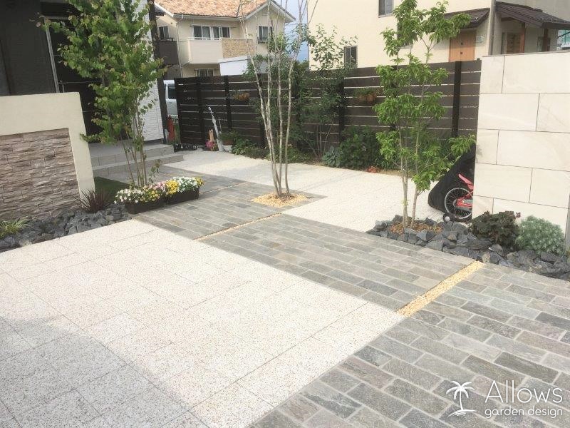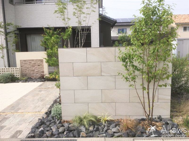 こちらも手前に設置した、ゴロタ石と植栽のスペースが高級感をアップさせていますね。