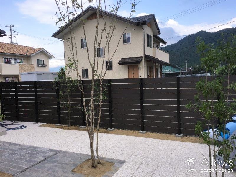 よりプライベート空間を充実させるため、隣地との境界は1.6mの樹脂フェンスを設置。