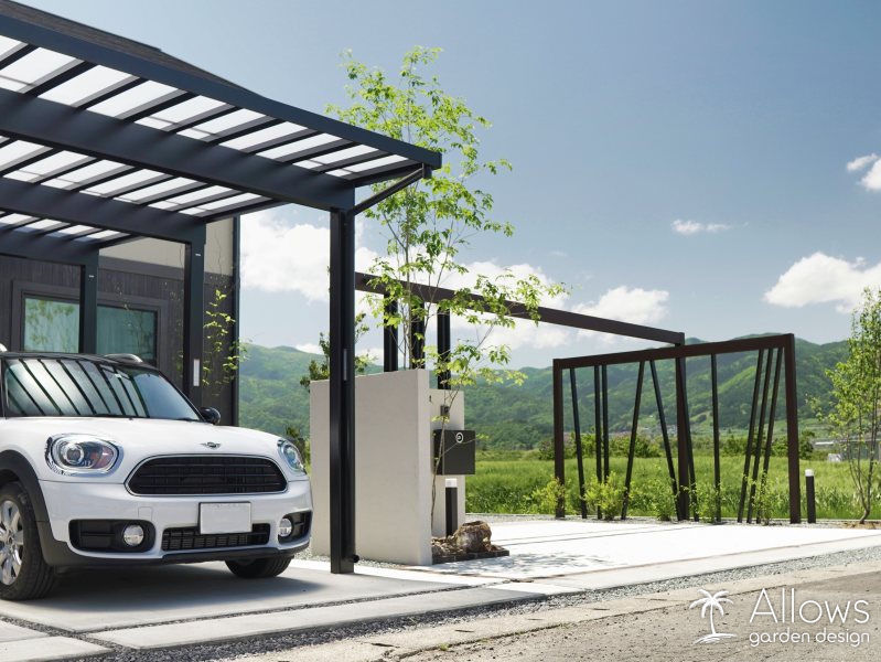セミクローズ外構・庭・ガーデンの施工例・門・車庫まわりの施工例