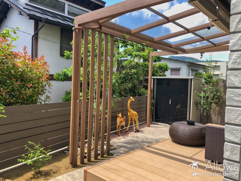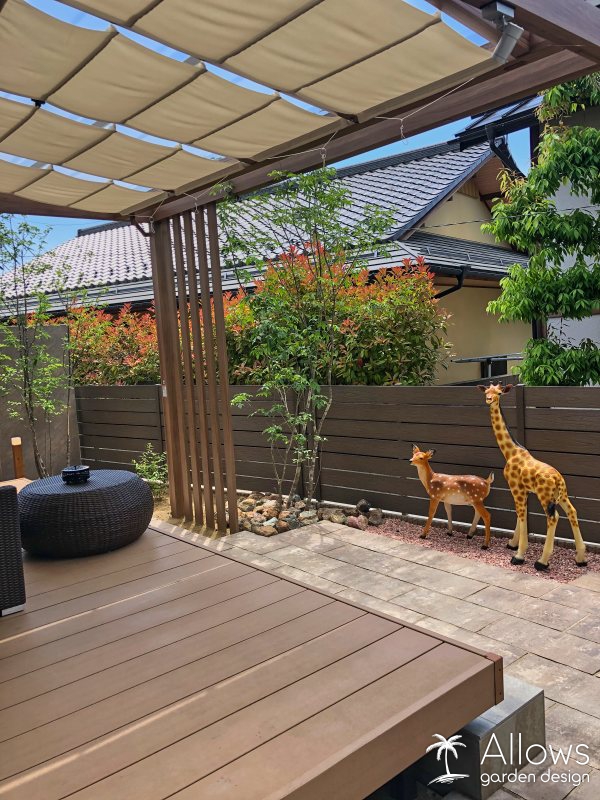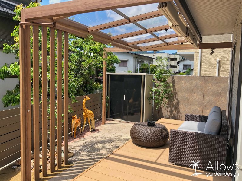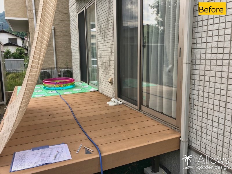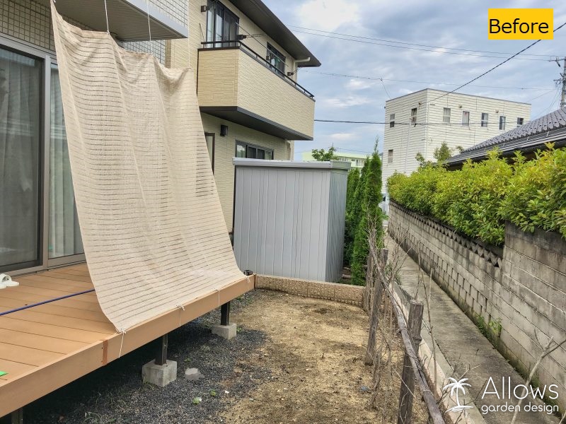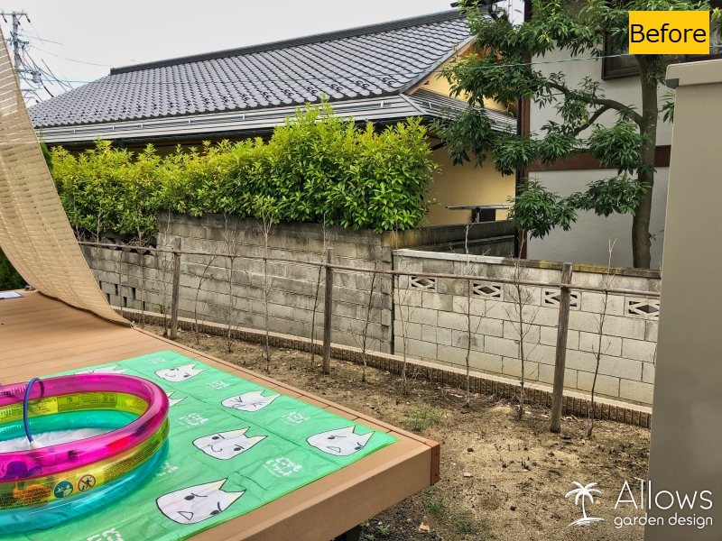 以前からウッドデッキが設置してあったのですが、目隠しや屋根、日除けがなかったために気楽に過ごすことが出来ませんでした。
