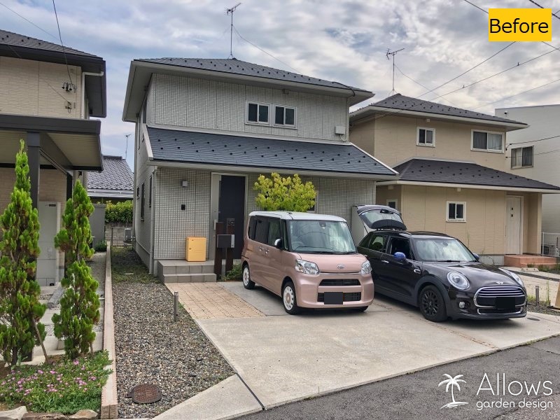 駐車場・アプローチのファサード部分は機能的に、ガーデンは癒しの空間に・・・。