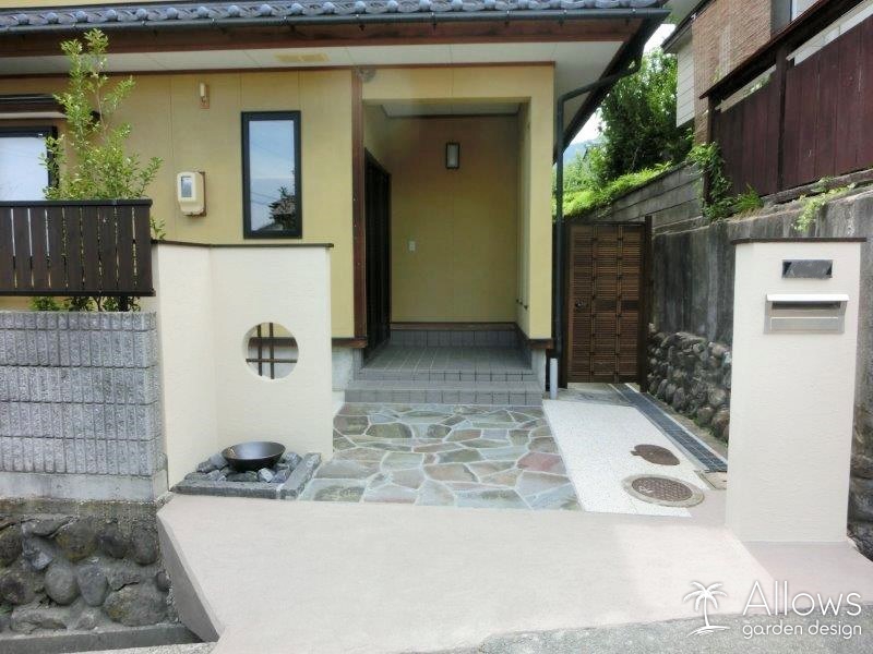 また、アプローチには高級感のある鉄平石の乱張りを使用しました。