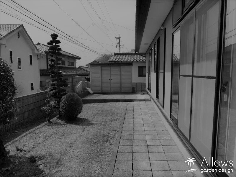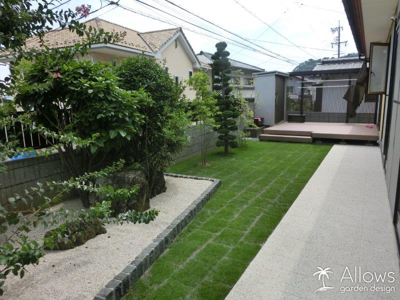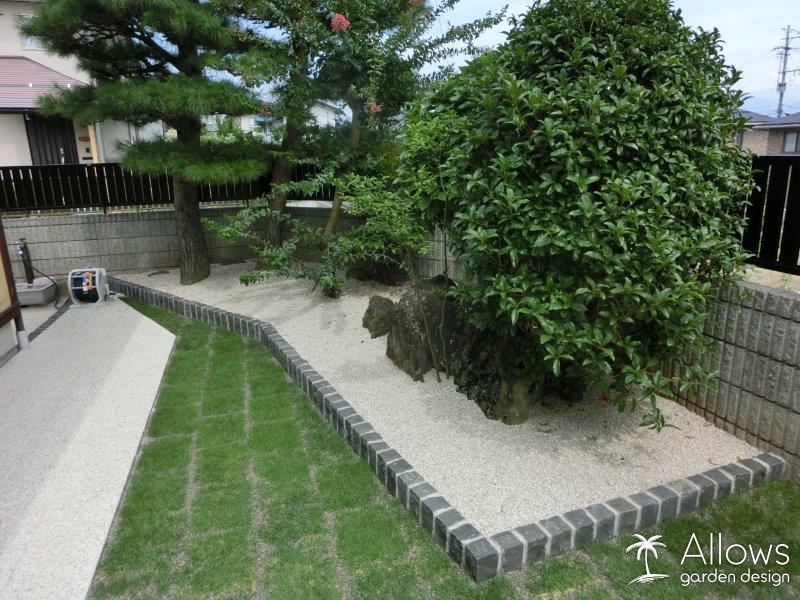 防止シートを敷き、和風の砂利を入れることで枯山水のような雰囲気にしました。