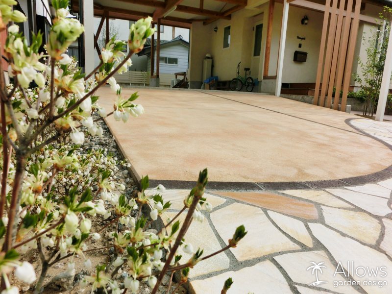 アプローチは既存コンクリートを四国化成エクランEXにて塗り仕上げ。