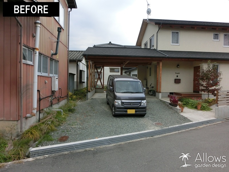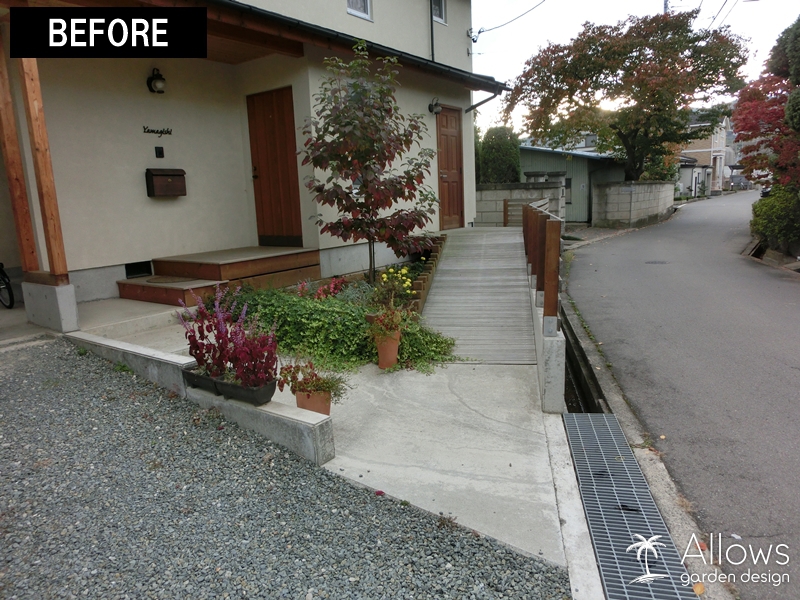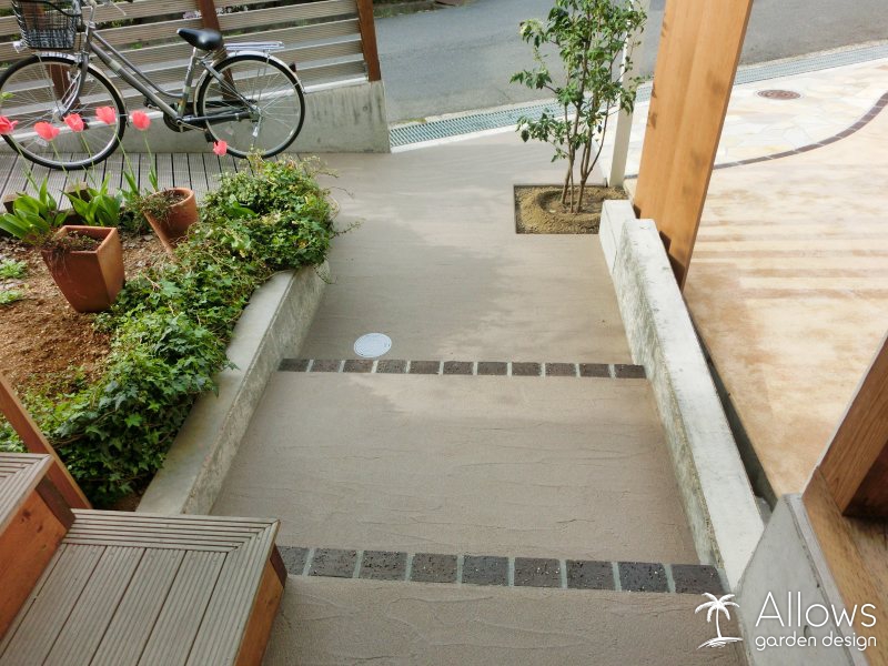 無機質なコンクリートが、とても温かみのあるアプローチに生まれ変わりました。