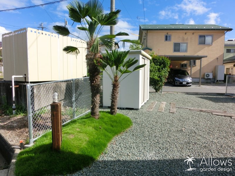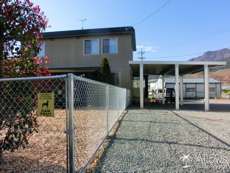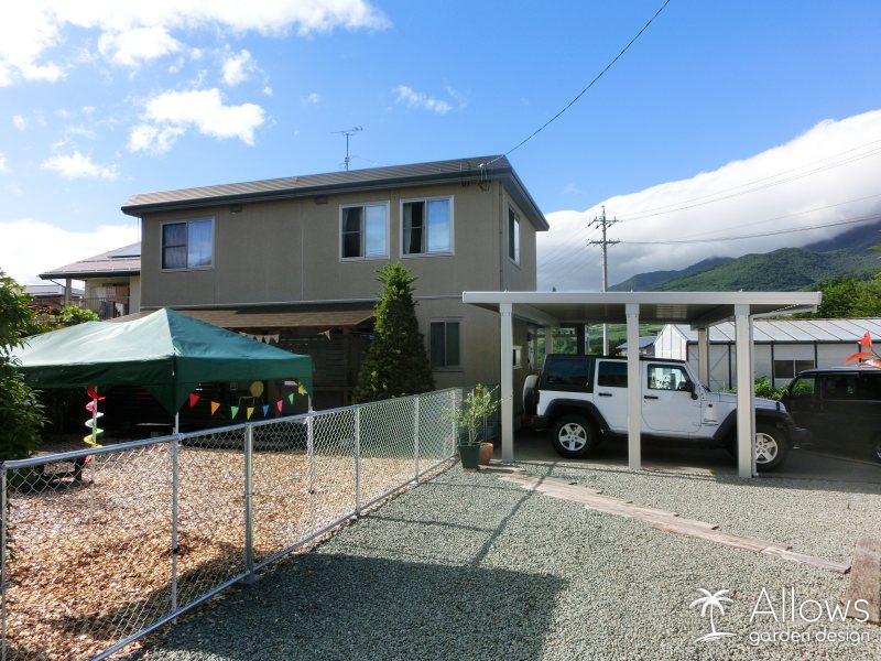 フェンスはPCフェンスを使用し、中にはウッドチップを敷き詰めました。