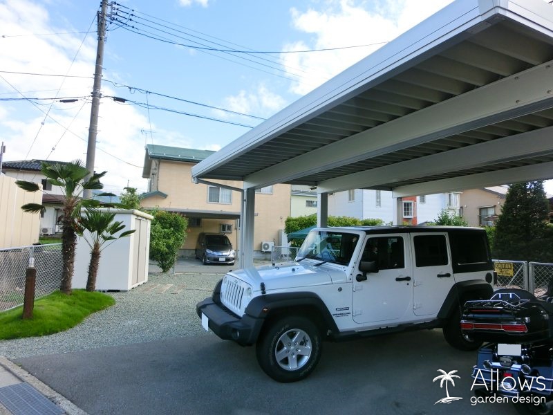 重厚感のあるカーポートは、アメリカンなデザインにとても合っています。