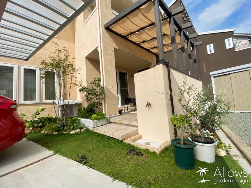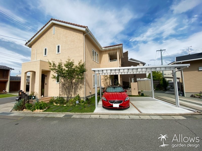 お施主様がガーデニングがご趣味という事もあり、花壇スペースなどの植え込みや周辺のグランドカバーしていただき、より素敵なお庭が完成しました!