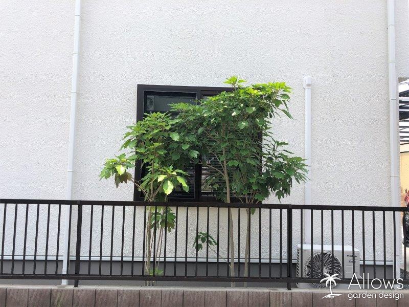 北側窓の目隠しには、カクレミノ。