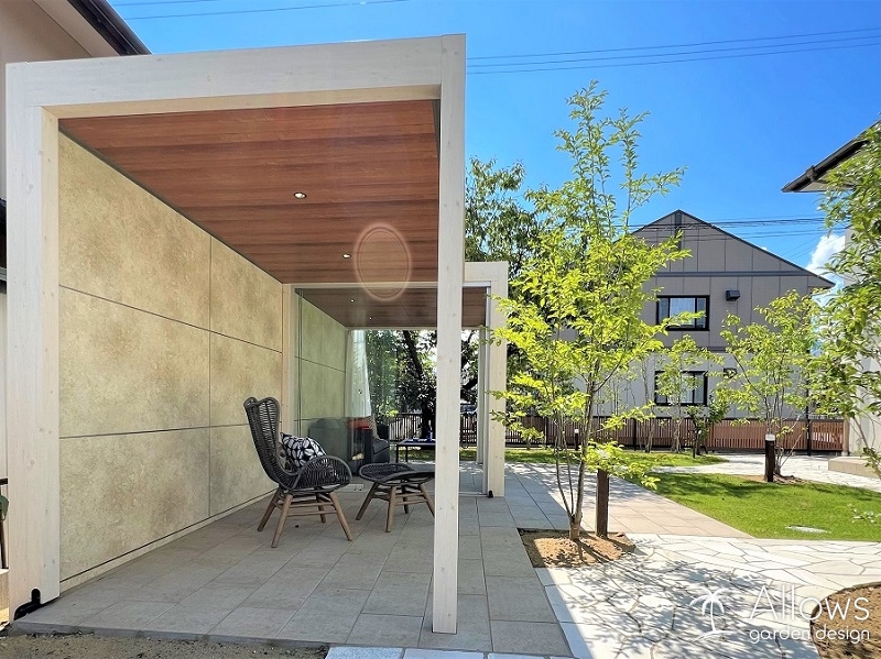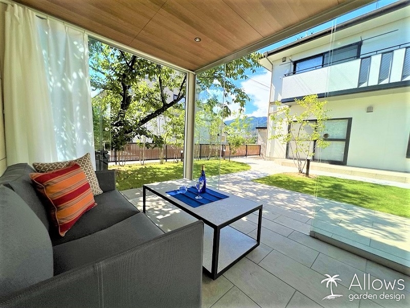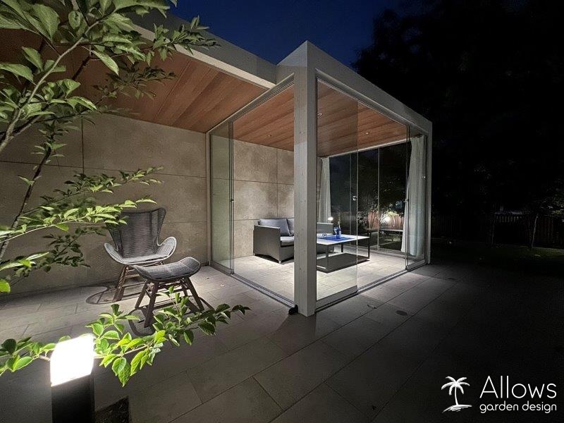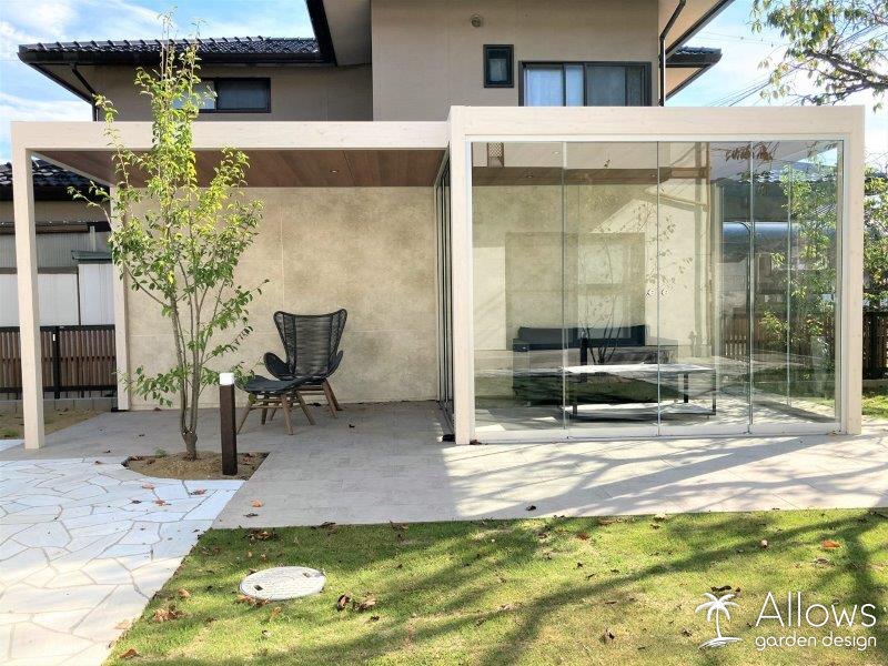 ガーデンのアネックス(離れ)には、タカショーのオールグラスポーチ。