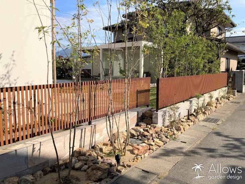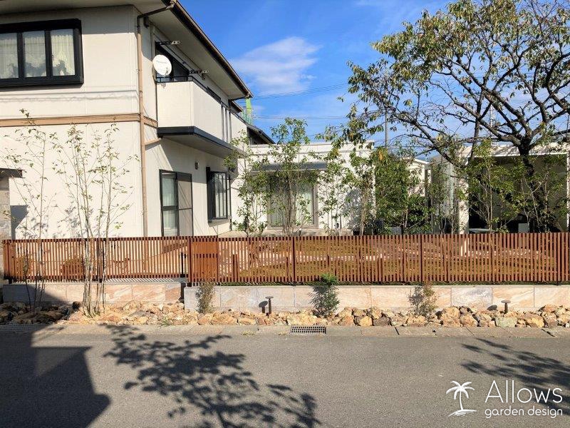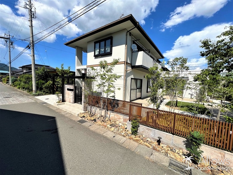 協定がある地域の為高さや透過性の制限を受けましたが、植栽によって目隠しをし、より素敵な雰囲気になりました。