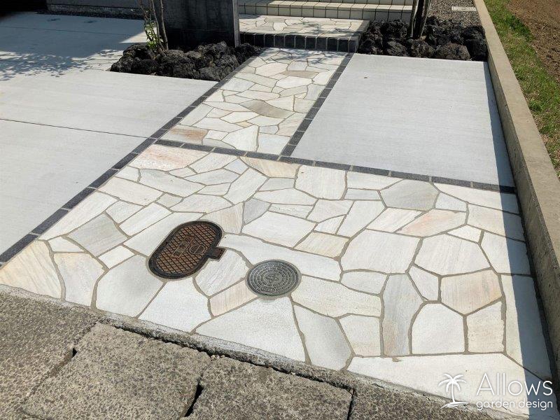 天然石とコンクリート、床の舗装はいずれもホワイト系です。