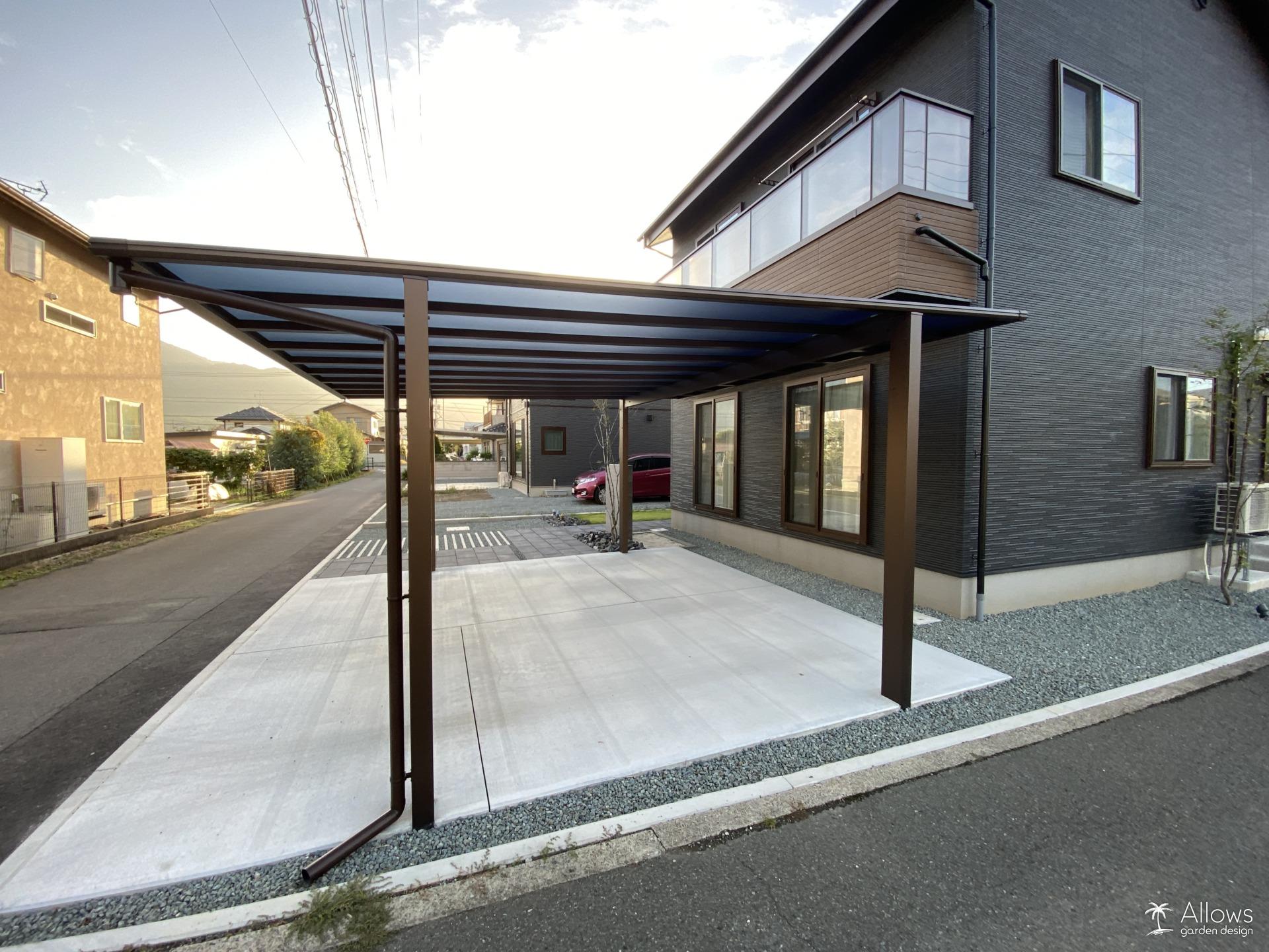 メインの駐車スペースにはカーポートを設置。