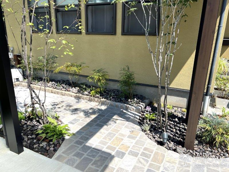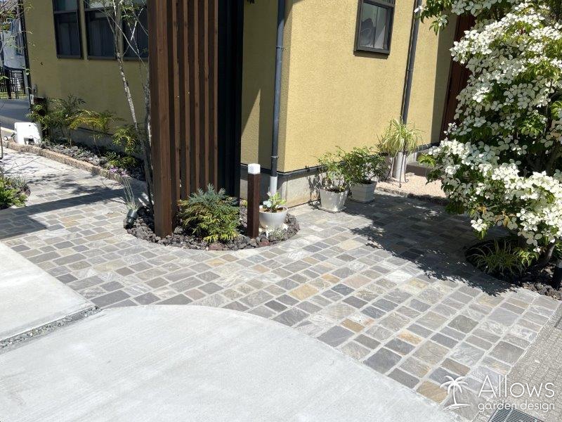 アプローチと遠路には、天然石を使用。