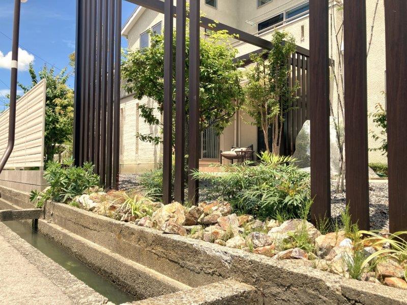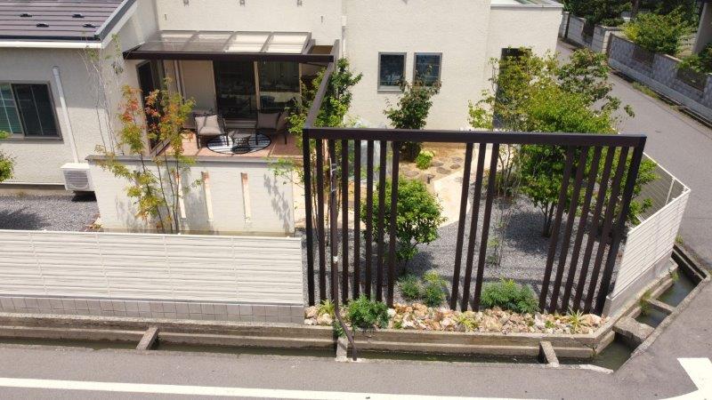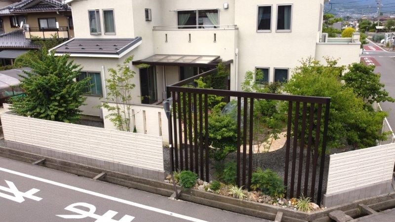 交差点のため周囲からの視線の通りが良く、ゆったりとお庭で過ごすためには目隠しが必要でした。